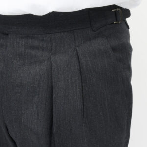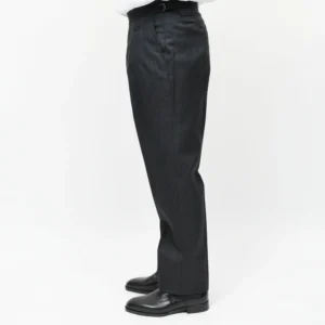 ヒップの収まりは非常に良く、プリーツの開き方や落ち方も実に自然でして、穿いた瞬間に感じる安心感は、やはりビスポークの思想を持つ作り手ならではのものです。