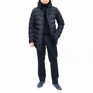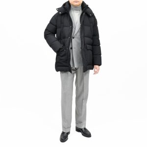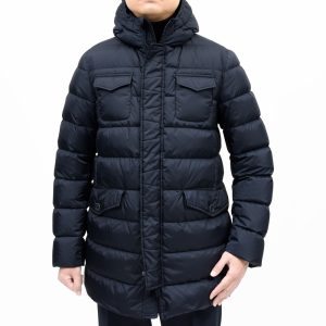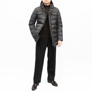 HERNO(ヘルノ)のカプセルコレクションFUNCTIONAL WARDROBE(ファンクショナルワードローブ)より提案がなされていた美的センスと機能性を追求したミドルレングズのダウンコート。