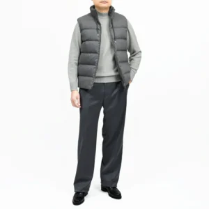 アウターほど重くならず、それでいて確かな暖かさが得られるため、日常使いから少しきちんとしたシーンまで幅広く活躍し、ベストという選択肢の中でも、明らかに“格”の違いを感じさせる一着です。