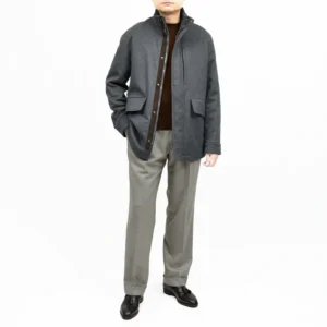 撥水性を備えたテックウール素材は、雨や雪といった悪天候にも対応しつつ、見た目は非常に落ち着いた印象でして、いわゆる“機能アウター感”がなく、街着として自然に溶け込む仕上がりです。