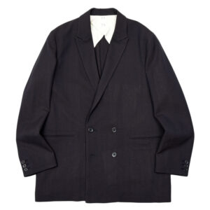 こちらは、しなやかで軽やかなサマーウールのヘリンボーン生地を採用した一着でして、マッドインディゴと呼ばれるやや赤みがかった色合いのネイビーが最高にクールなんですよね〜