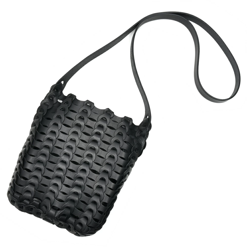バケッタレザーを用いたイントレチャートショルダーバッグ。