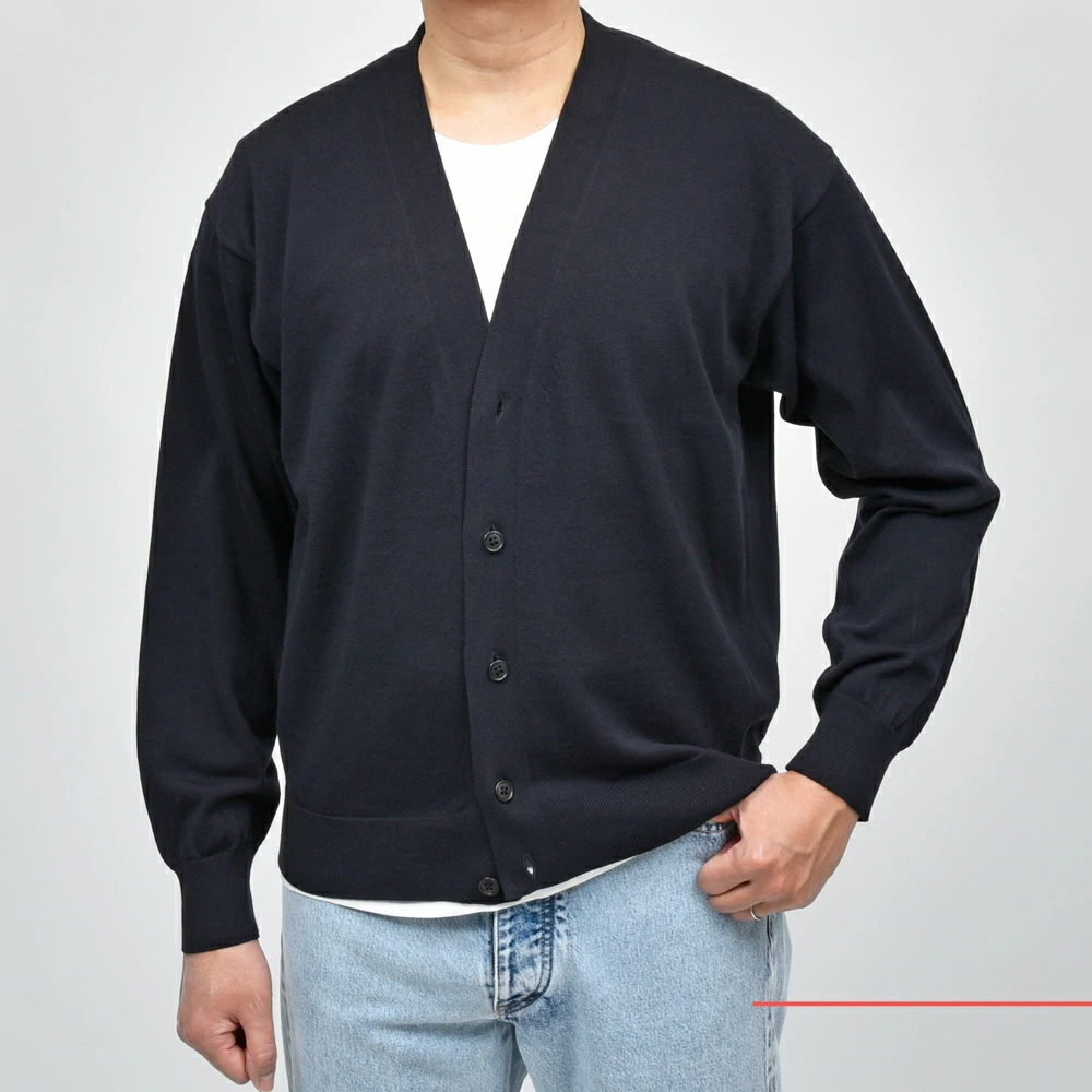 こちらは、オーガニックコットンを度詰で仕立てたカーディガン。