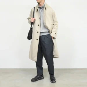 クラシカルなアイテムですが程良い抜け感、そしてエレガンスを兼ね備えているのはバルカラーコートの特徴です。