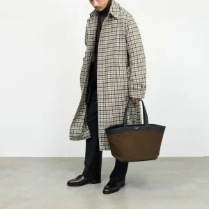 柄物のコートは一見難しそうに思われますがこちらのスタイリングのようにブラウンやグレー・ブラックなど統一すると浮いて見えることもなく、少し捻りを加えて着こなしているという印象になります。