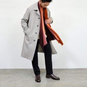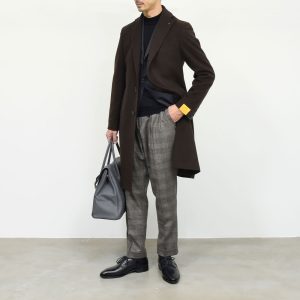 guji別注、秋冬の大定番TAGLIATORE(タリアトーレ)のシングルチェスターコートを用いたスタイリングです。
