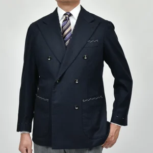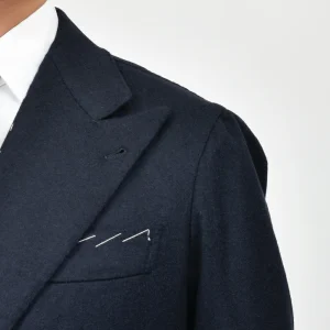 ラペルやラペル返りの丁寧な仕上げ、ラペルの返りやハンドステッチの表情は、手仕事の豊かさと品質の高さを同時に感じるポイントです。