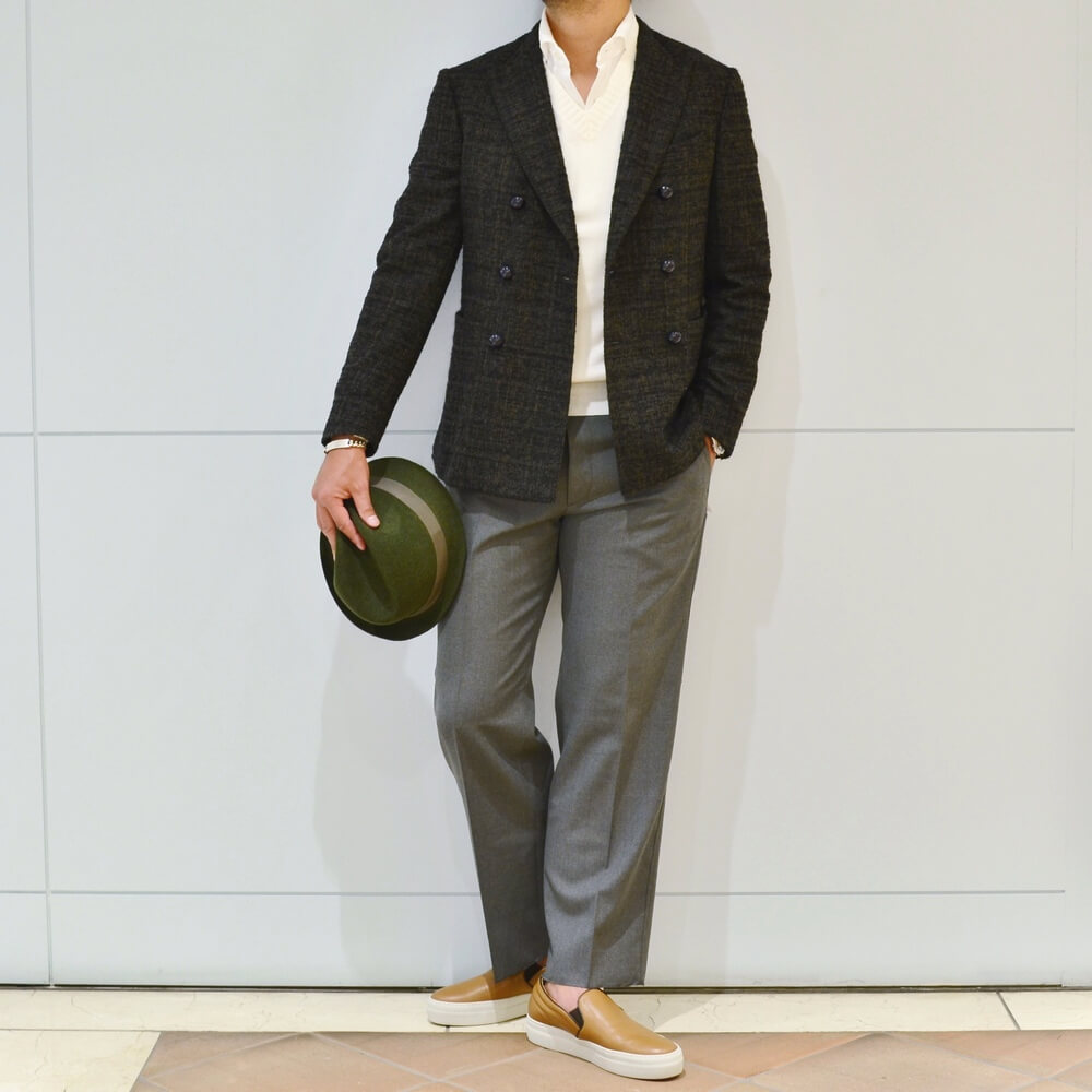 ジャケット:THE GIGI シャツ:Cruciani シャツ:Finamore パンツ:CellarDoor 靴:Renato Pagnanini 帽子:ANTHONY PETO