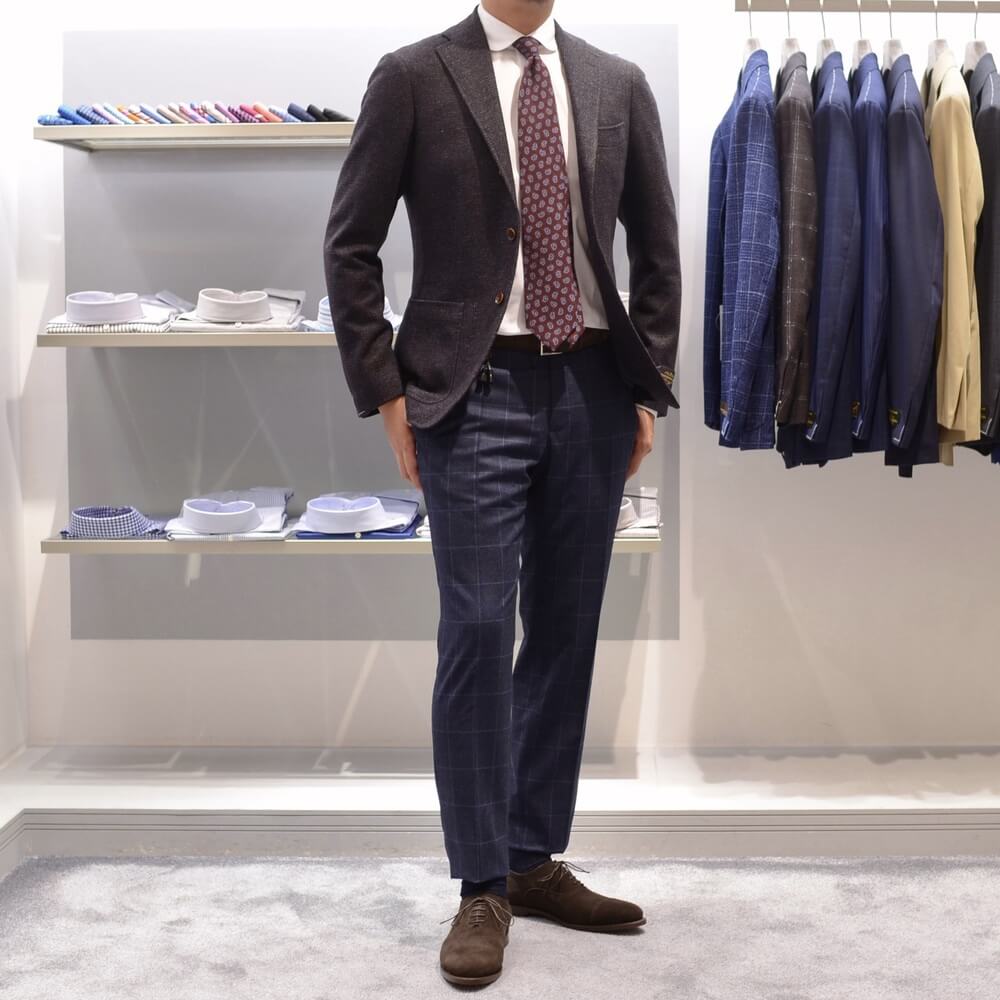 ジャケット:RING JACKET シャツ:GUY ROVER ネクタイ:ISAIA パンツ:INCOTEX 靴:SANTONI ベルト:ORCIANI